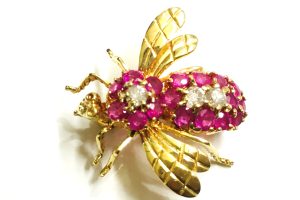 - ジュエリー・金・貴金属・ルビー・ダイヤモンド・ブローチ・bee