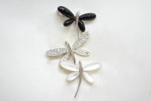 - ジュエリー・ダイヤモンド・オニキス・シェル・pt900・昆虫・ブローチ・カラーストーン・色石