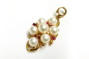 - ジュエリー・カラーストーン・k18トップ・アコヤ真珠・ルビー・18金