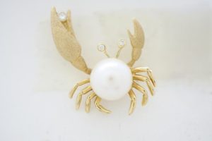 - ジュエリー・14金・K14・パール・ダイヤモンド・カニ・ピンブローチ